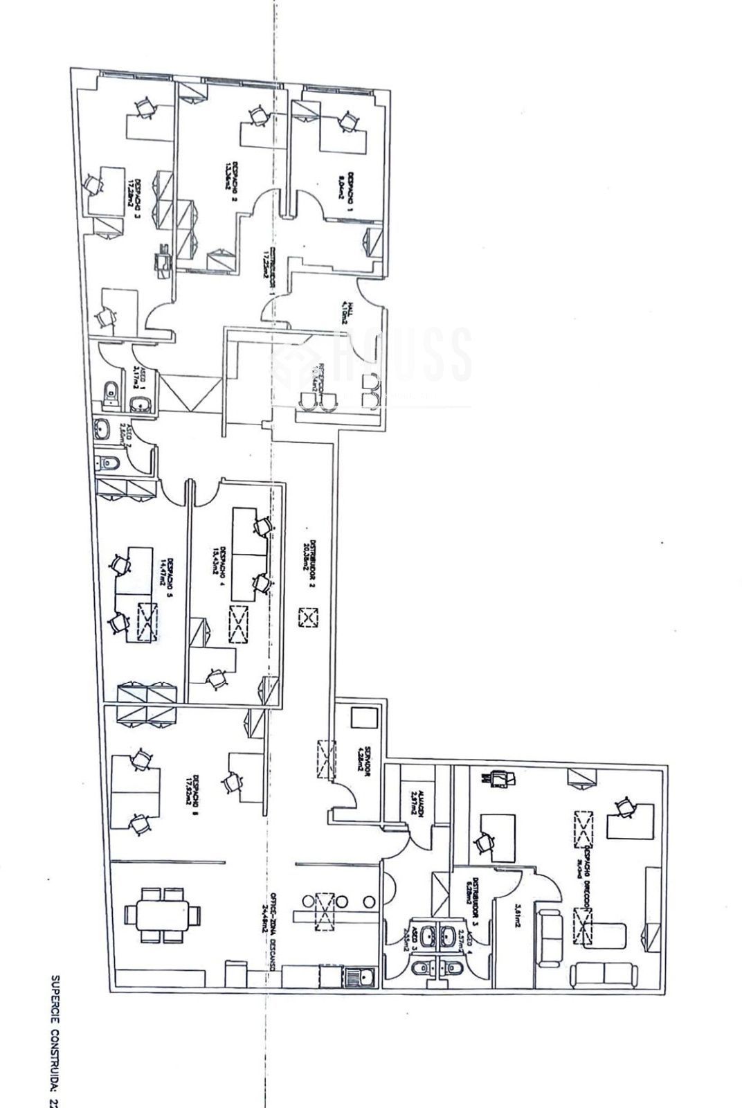 La propiedad se distribuye en 7 espacios independientes, totalmente amueblados, que pueden destinarse a oficinas privadas, despachos o salas de reuniones. Dispone de 7 equipos de aire acondicionado, lo que garantiza el confort en todas las estancias.